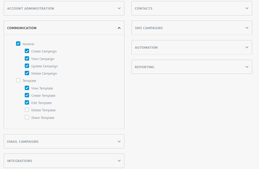 Select access options for Email Campaigns