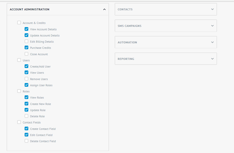 Select access options for SMS Campaigns