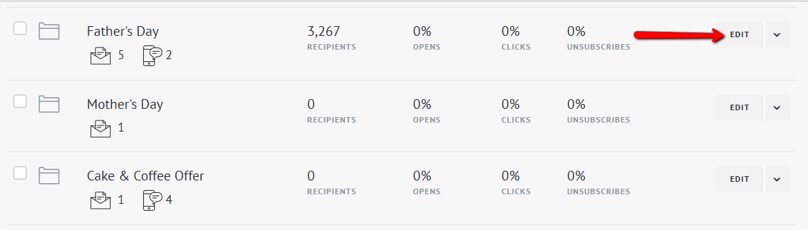 To edit an existing campaign go to the Campaign section Locate the campaign you would like to edit via the Campaign View, Folder View of Search Feature Click the Edit button next to the relevant campaign The system will take you through each step ...