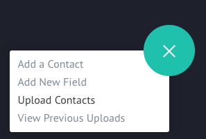 To upload your data, navigate to the Contacts page, click on the + icon and select Upload Contacts.